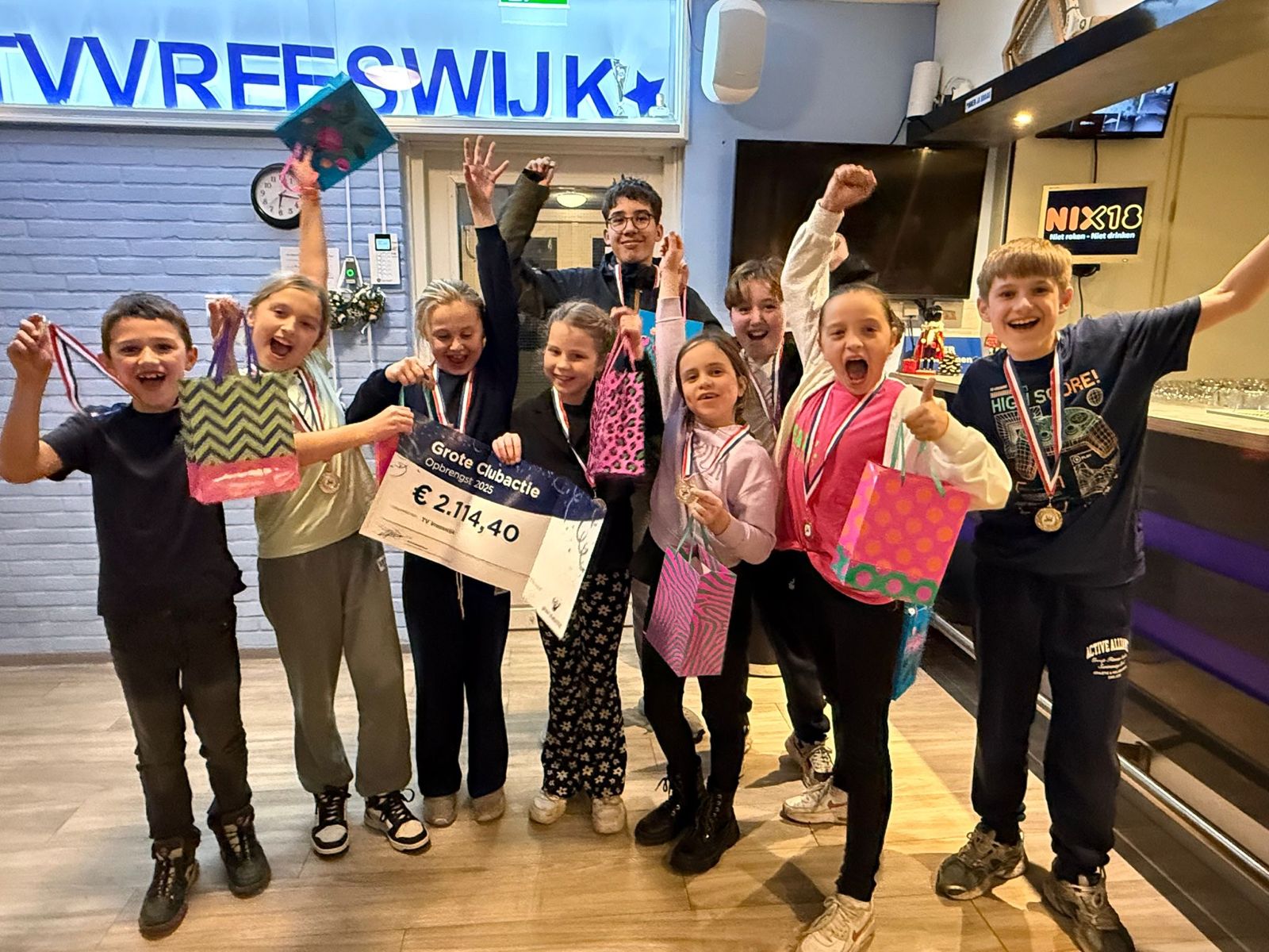 Zondag 14 december ging de jeugd naar Bounce Valley op uitje. Daarna werd er in het clubhuis patat gegeten en werden de top verkopers van de grote clubactie nog even in het zonnetje gezet! In totaal werden er 881 loten verkocht. 11 leden verkochten meer dan 25 loten. Dit jaar verkocht Jara de meeste, maar liefst 144 stuks! Al met al werd er een mooi bedrag opgehaald voor leuke activiteiten in 2026!