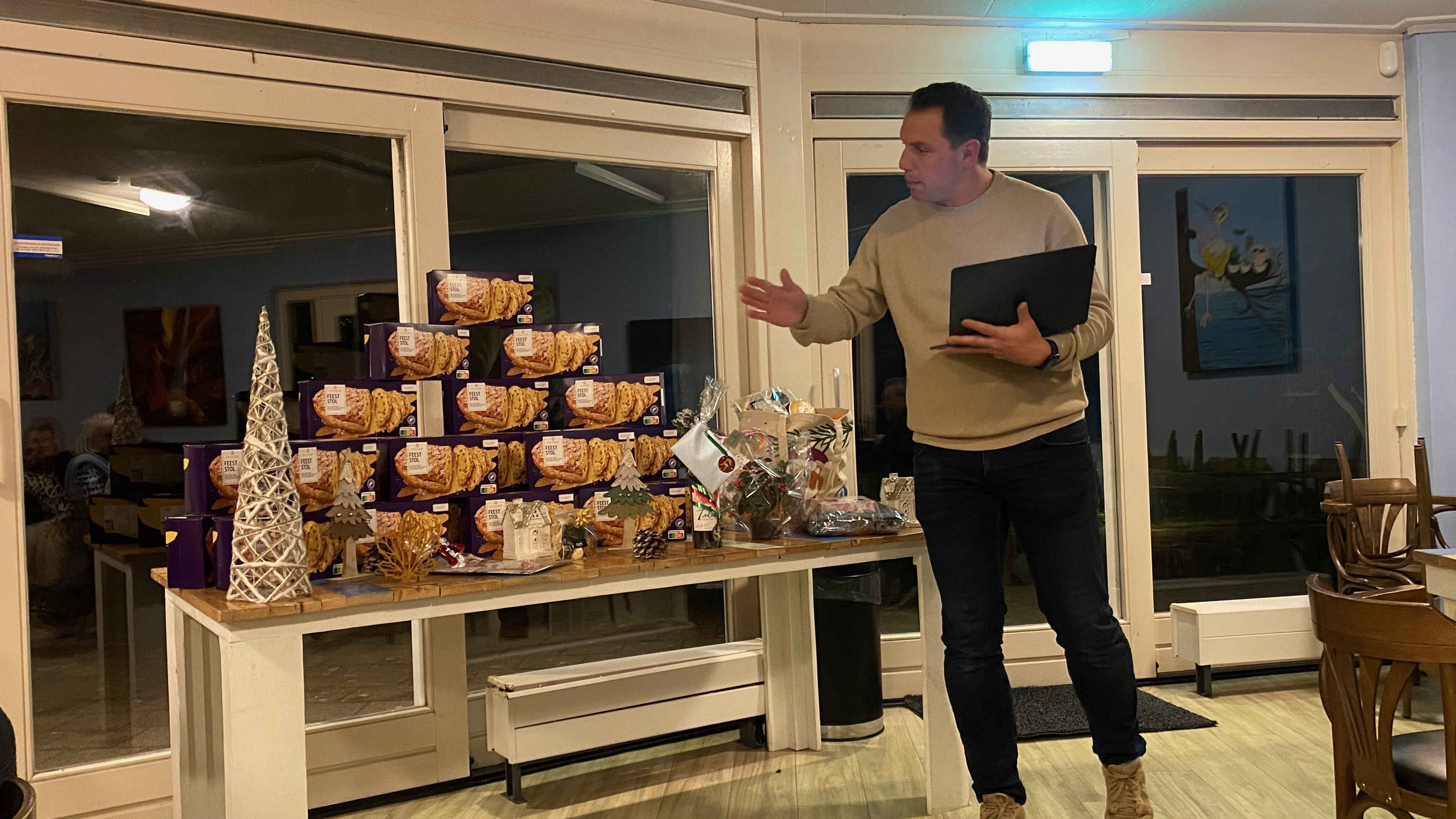 Na de prijsuitreiking ging niemand met lege handen naar huis: iedereen kreeg een heerlijke kerststol van Albert Heijn Hoogzandveld mee. Ondertussen zorgde onze voorzitter Manon Warrink voor een uitstekende barbediening, waardoor het ook aan hapjes en drankjes niets ontbrak.