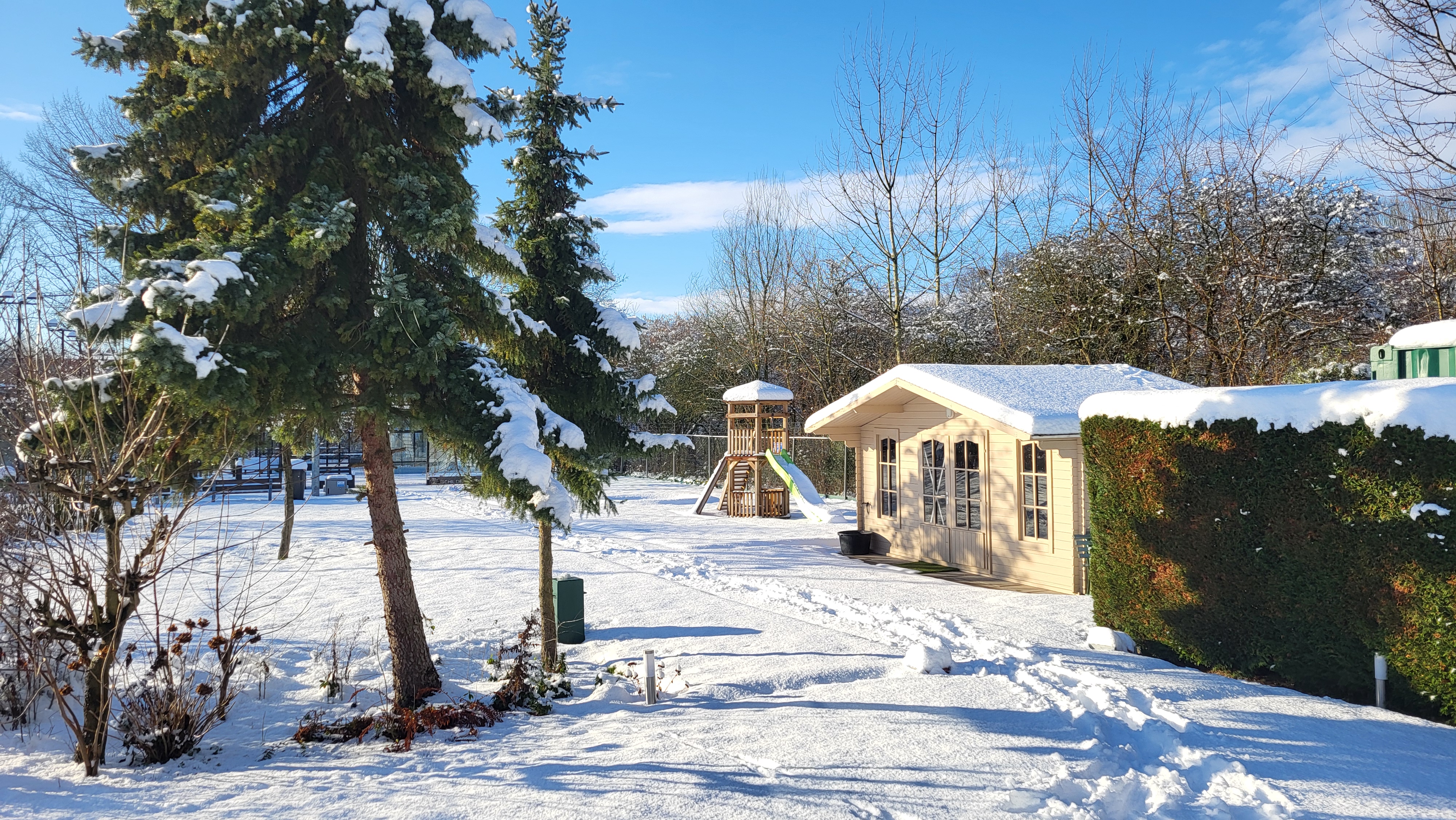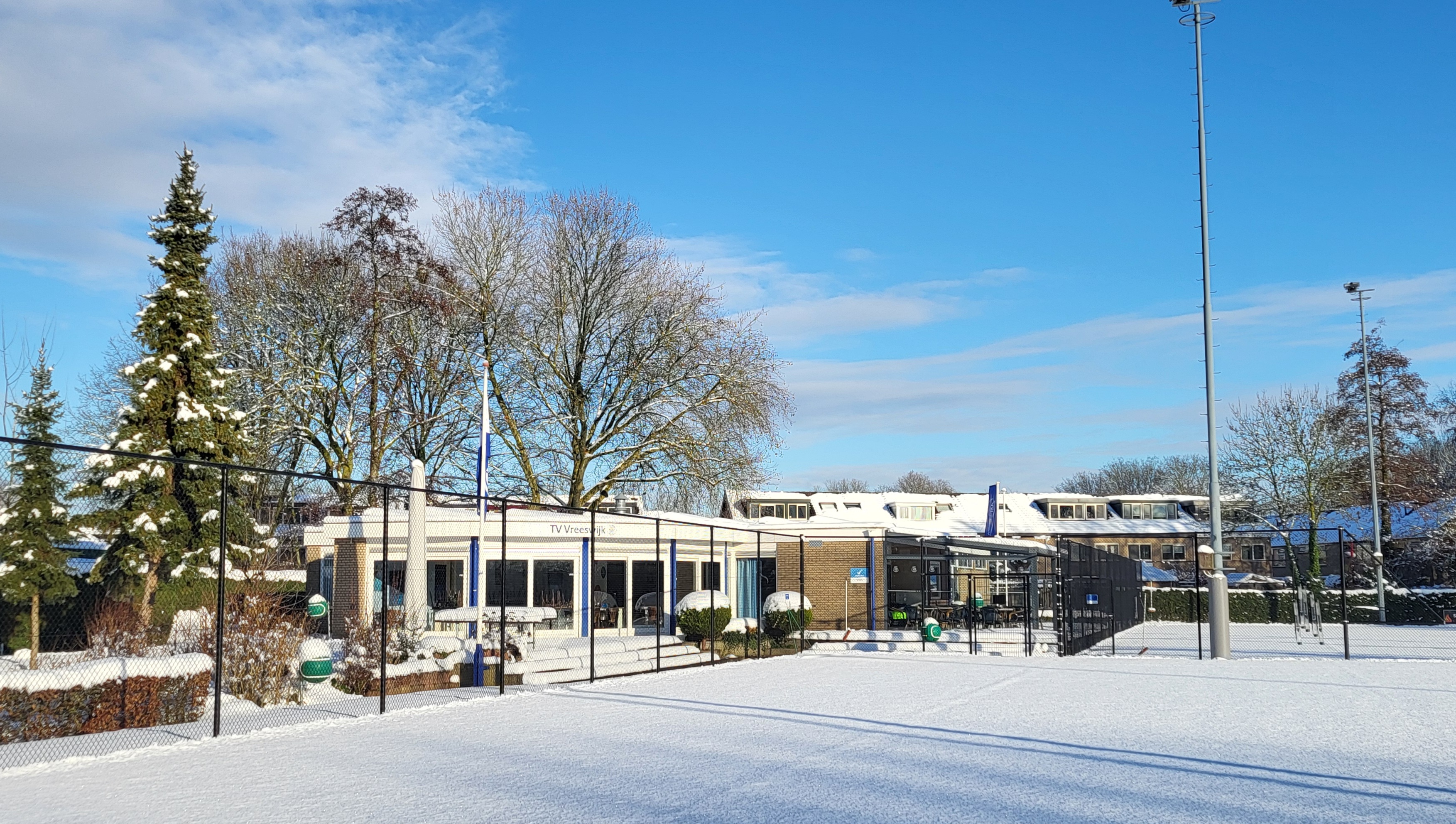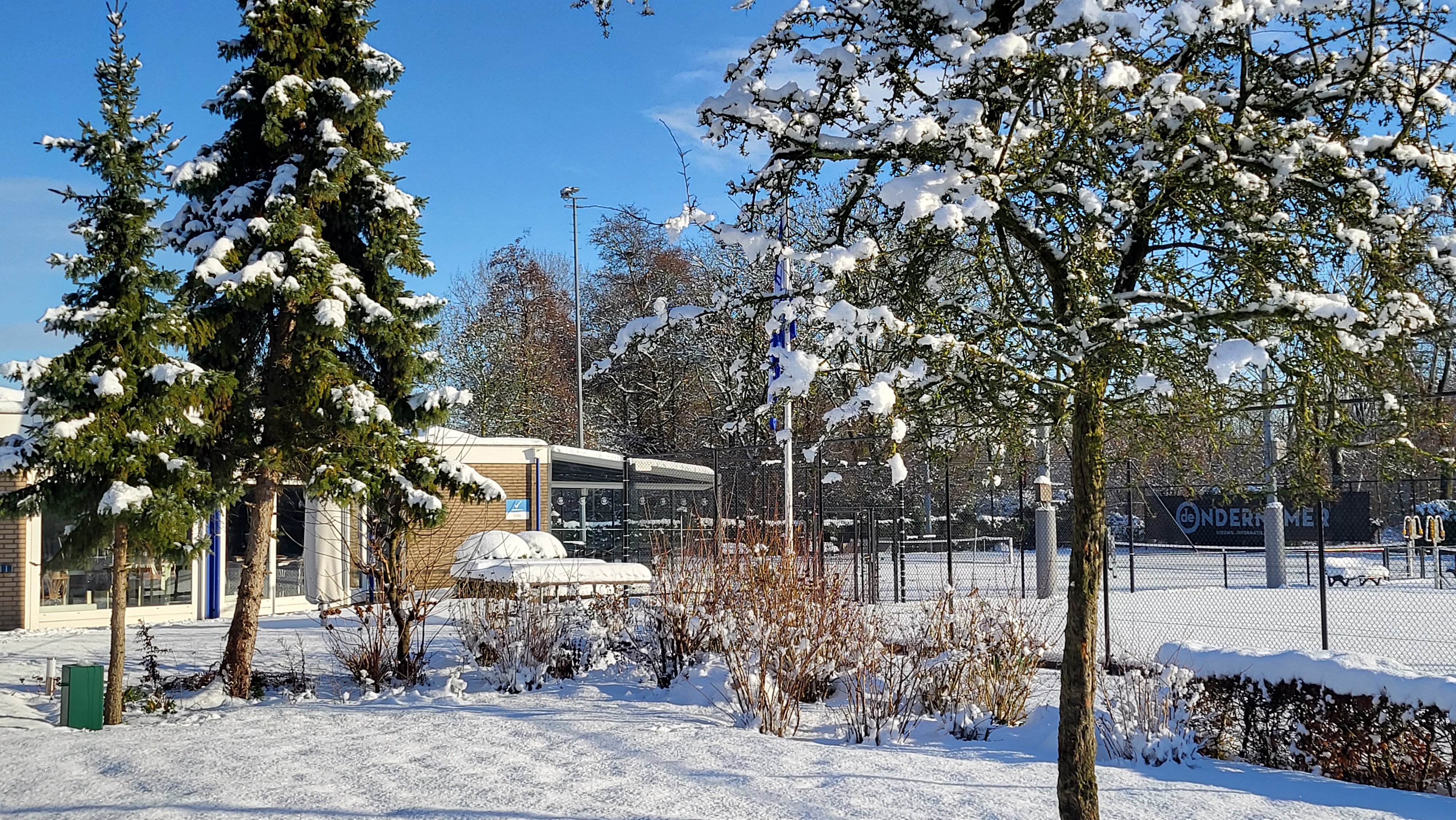 Een skihut hebben we al, nu nog glühwein. Ons park is bedekt met een prachtige witte deken. Tennissen en padellen zit er even niet in. Houd de berichtgevingen in de gaten.